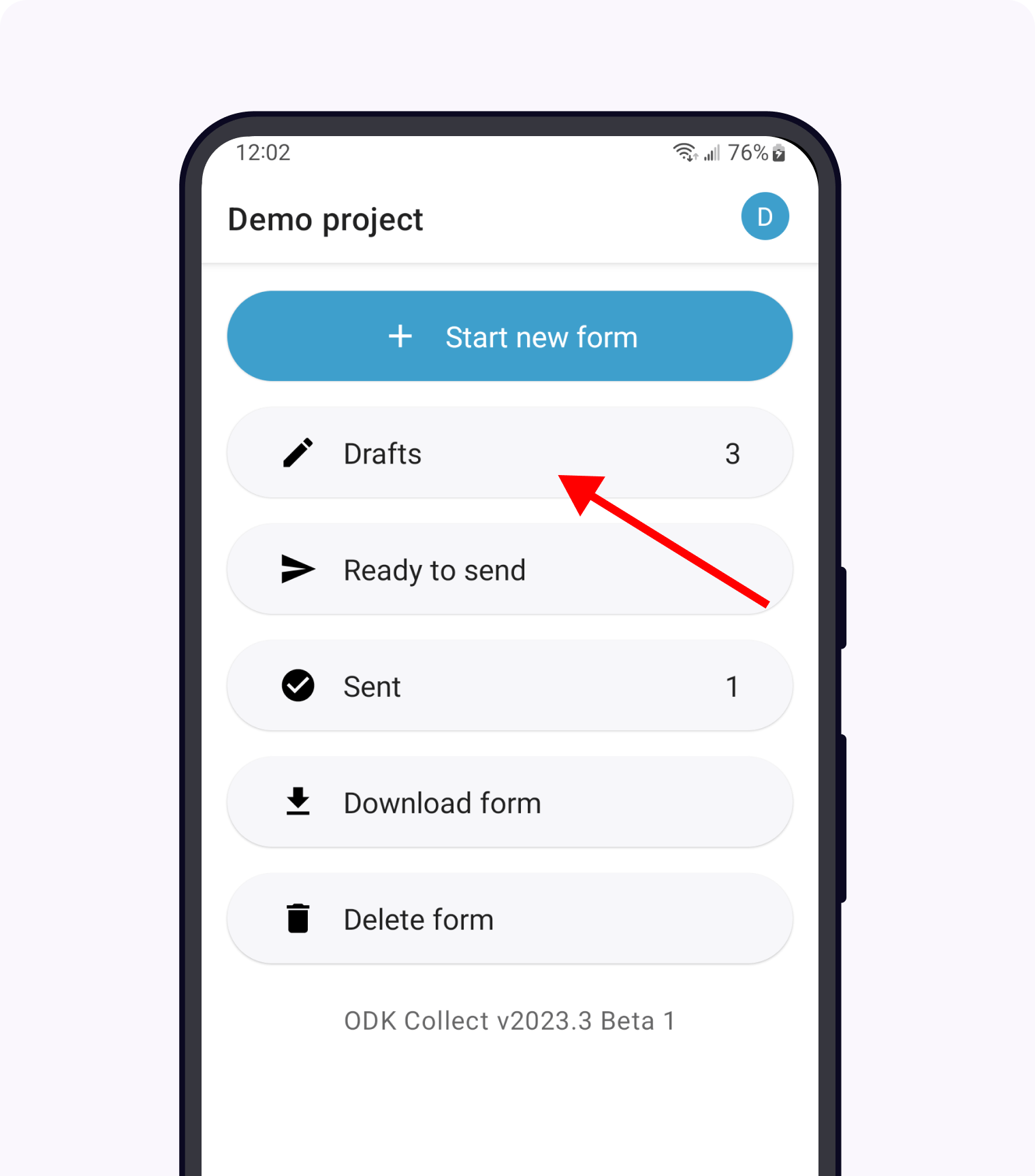 If you want to continue modifying data up until the moment when forms are ready to sent, you will need to save those forms as drafts. When you're ready to send them, you could then open each draft, navigate to the form end screen, and tap the Finalize or Send button. However, this would be inconvenient if you have many drafts that are ready to be sent. In that case, you can use the option to finalize all drafts.